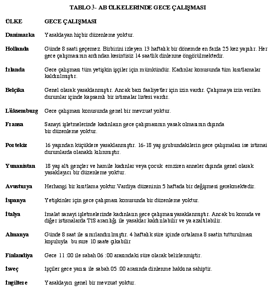 Yanı sıra çalışanların %56.8i gece çalışmasından farklı derece etkilenmektedir. Avrupada yaşayan 4 işçiden biri pazar günleri, işçilerin %47si de cumartesi günleri mesai yapmak zorunda bırakılmaktadır. (Tablo 3-4)