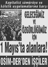 Sanayi işçilerinin geneline ise merkezi 1 Mayıs afişleri ve bildirilerimizle sesleniyoruz. Önümüzdeki hafta ise fabrikaların kendi özgün sorunlarıyla ilgili bildirilerimizi ulaştıracağız.
