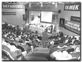 Toplantıda Av. Murat Özveri, Maltepe Üniversitesi Öğretim Görevlisi Atilla Özsever ve Dr. Osman Öztürk sunumlar gerçekleştirdiler. 4 saat süren toplantı boyunca salondaki işçiler sloganlarına hiç ara vermediler.
